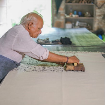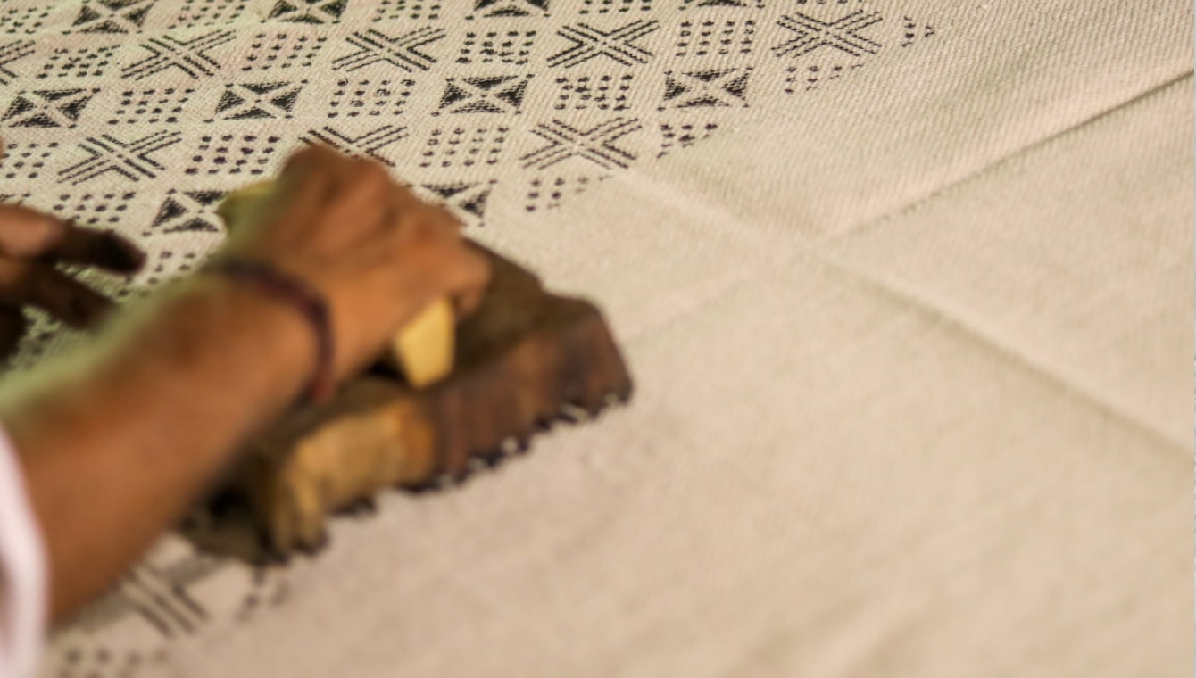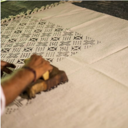 Chez Mytri Designs, nos artisans se spécialisent dans l’impression en bloc sur tissu.