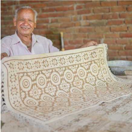 Le Rajasthan comptait une importante communauté de producteurs de textiles et l'impression et la teinture du coton étaient l'une des spécialités de l'État. Le Gujarat est également devenu un centre important pour les tissus imprimés, des blocs spéciaux étant utilisés pour créer des motifs complexes. Aujourd'hui, les deux États continuent d'être des acteurs majeurs de l'industrie textile indienne, produisant certains des meilleurs tissus imprimés au monde. Chez Mytri Designs, nous travaillons spécifiquement avec des artisans spécialisés dans la technique d'impression au bloc, en utilisant des méthodes transmises de famille en famille depuis des générations.