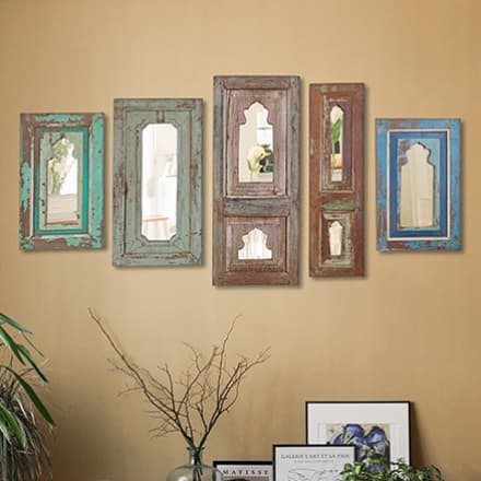 Chez Mytri Designs, nous travaillons avec de nombreux artisans talentueux spécialisés dans les techniques du bois vieilli. Et chaque artisan travaille avec des designs différents, c'est pourquoi nous proposons une gamme de collections, chacune unique et incroyable dans son design.