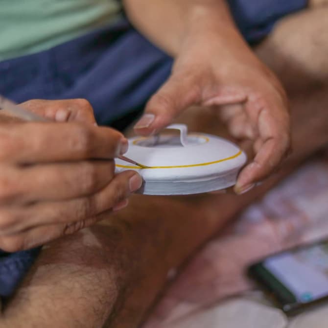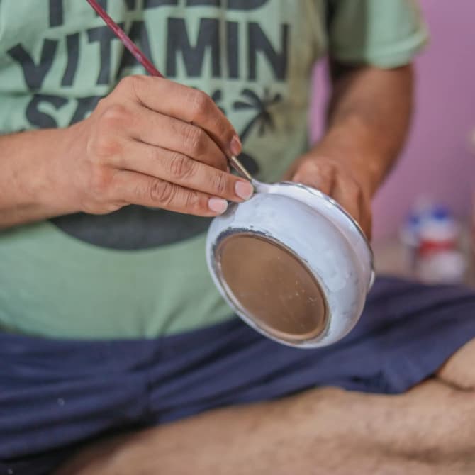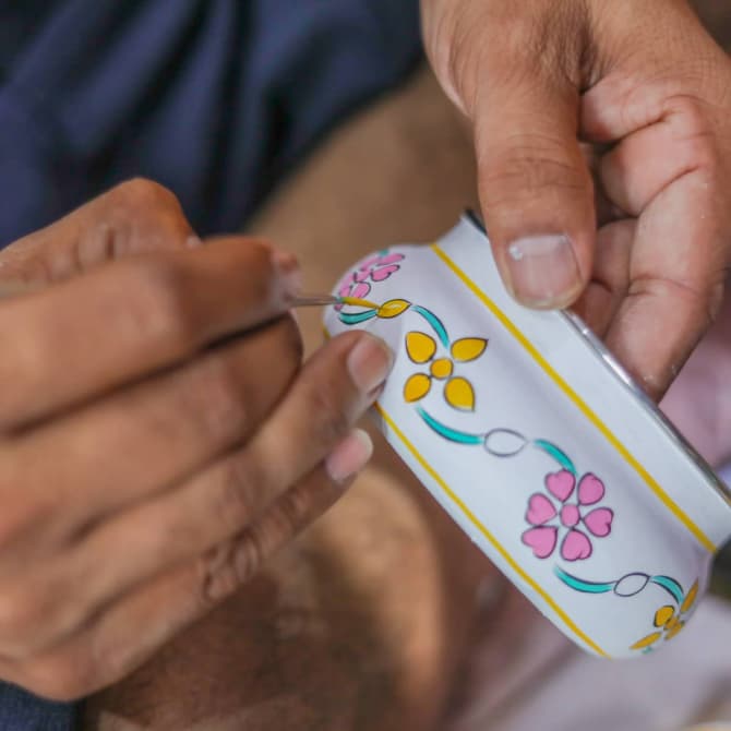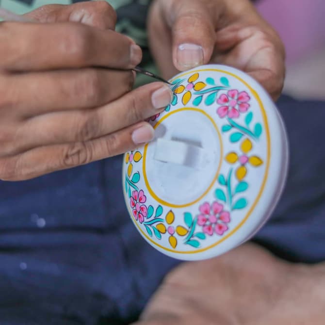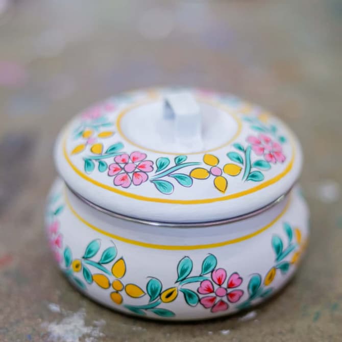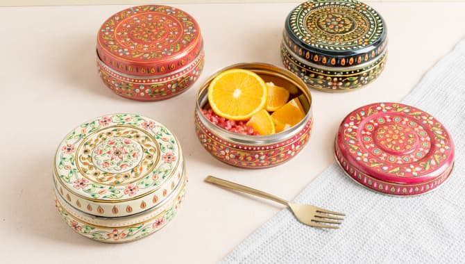 Chez Mytri Designs, chacune de nos boîtes Tiffin est fabriquée et peinte à la main par des artisans qualifiés.