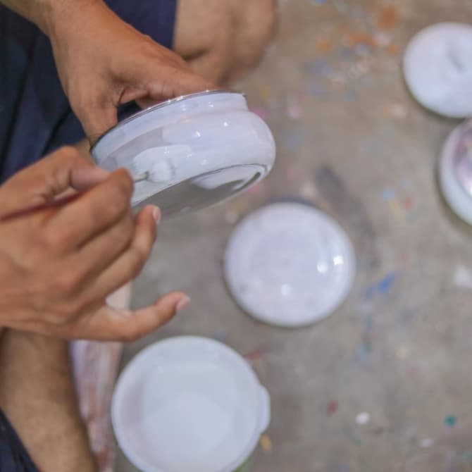 Chacun de nos tiffins est entièrement peint à la main, chaque artiste utilisant ses compétences pour créer un design unique sur chacun.